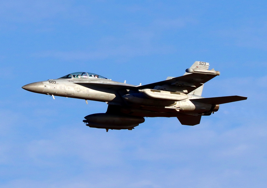 米海軍艦載機 EA-18G グラウラー 電子戦戦闘攻撃機(岩国基地)、NF、503番機が離陸