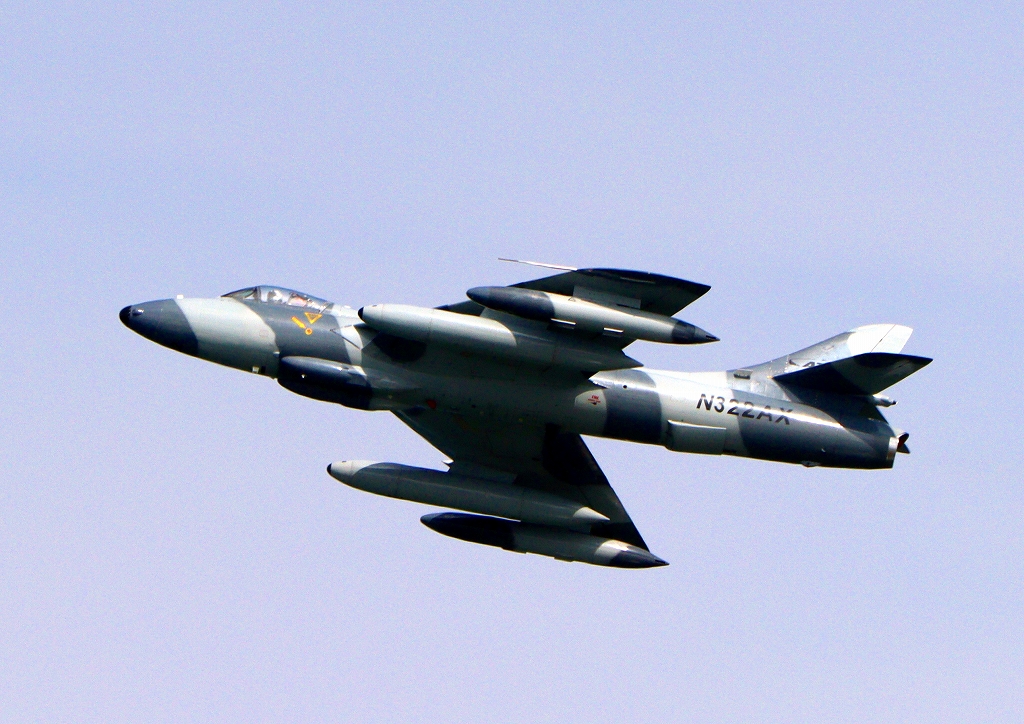 米海軍チャーター機 ホーカー・ハンター MK58 訓練支援機、N322AXが厚木基地に向けて離陸。厚木基地着陸は、35分。58分間の飛行。