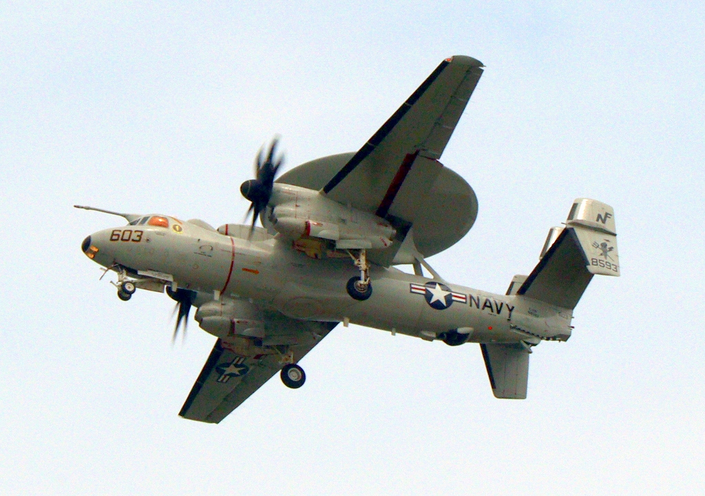 米海軍艦載機 E-2D アドヴァンスド・ホークアイ 早期警戒機(岩国基地)、603番機が旋回