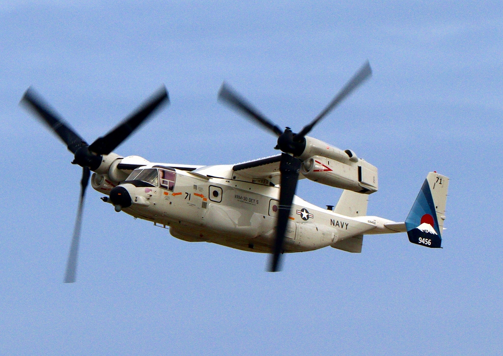 米海軍艦載機 CMV-22 オスプレイ 輸送機、71-9456番機が離陸、固定翼モードに