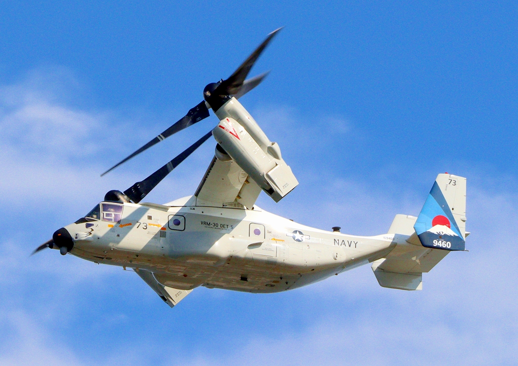 米海軍艦載機 CMV-22B オスプレイ(岩国基地)、73-9460番機が転換モードで旋回
