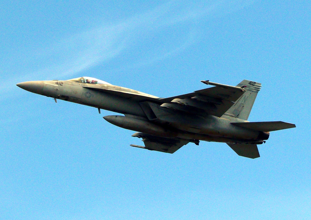 米海軍艦載機 F/A-18E スーパーホーネット 戦闘攻撃機(岩国基地)、NF、412番機が離陸