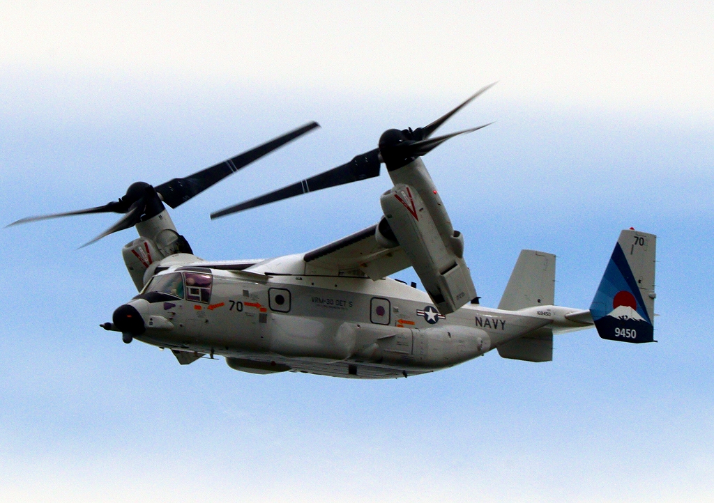 米海軍艦載機 CMV-22B オスプレイ(岩国基地)、70-9450番機が旋回