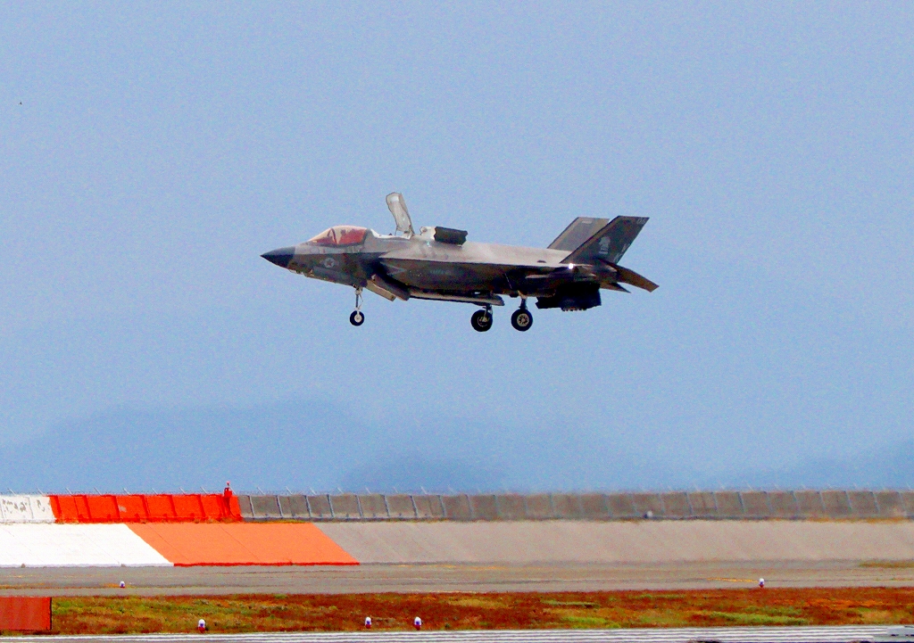 海兵隊 F-35B ライトニングⅡ ステルス戦闘機(岩国基地)、VK、06番機が垂直着陸パッドの上でホバリング
