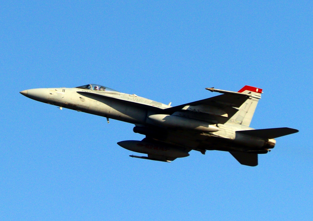 米海兵隊 F/A-18C ホーネット 戦闘攻撃機(岩国基地)、WT 11番機が離陸