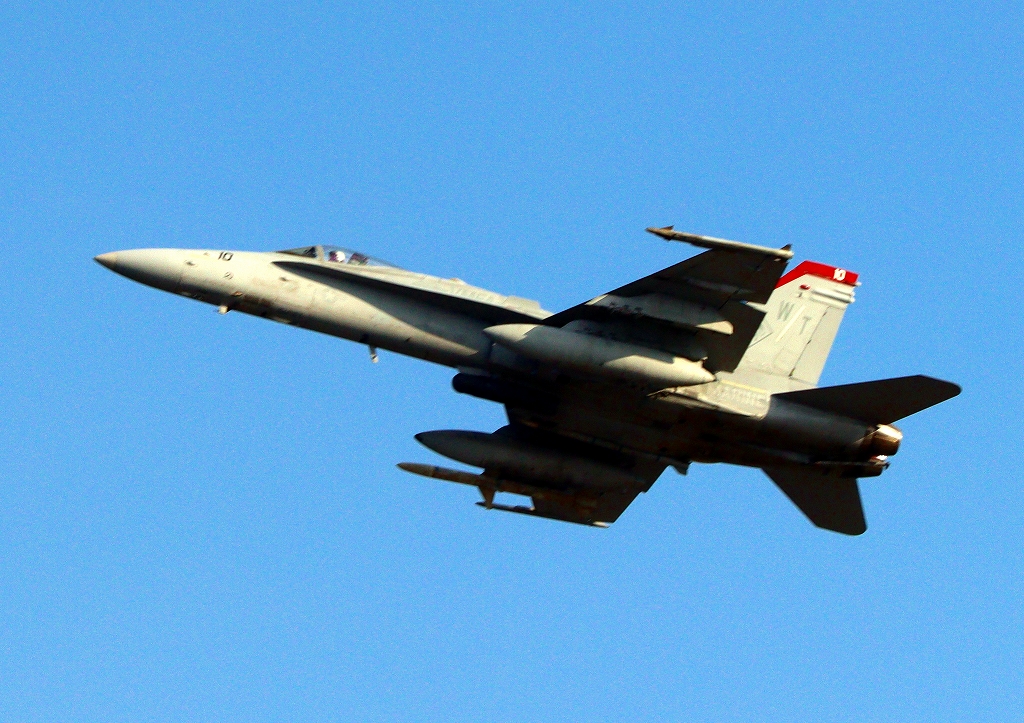 米海兵隊 F/A-18C ホーネット 戦闘攻撃機(岩国基地)、WT 10番機が離陸