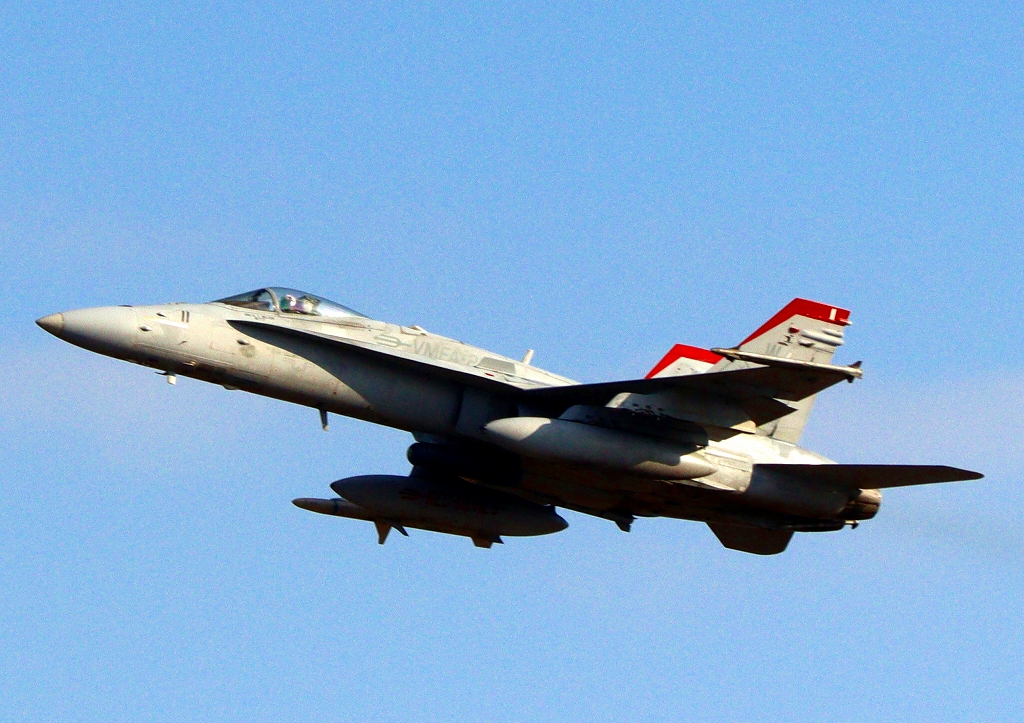 米海兵隊 F/A-18C ホーネット 戦闘攻撃機(岩国基地)、WT 11番機が離陸