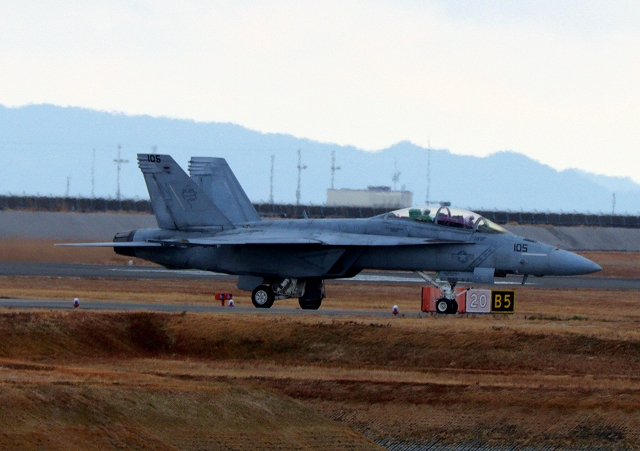 米海軍艦載機 F/A-18F スーパーホーネット 戦闘攻撃機(岩国基地)、NF、105番機 |