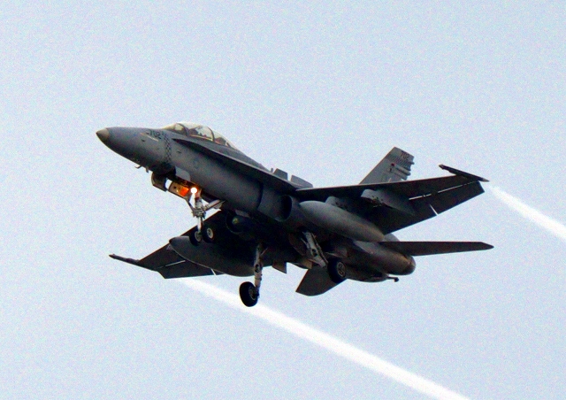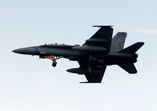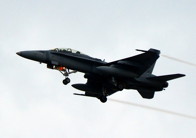 米海兵隊 F/A-18D ホーネット 戦闘攻撃機(岩国基地)、DR、702番機が旋回 |