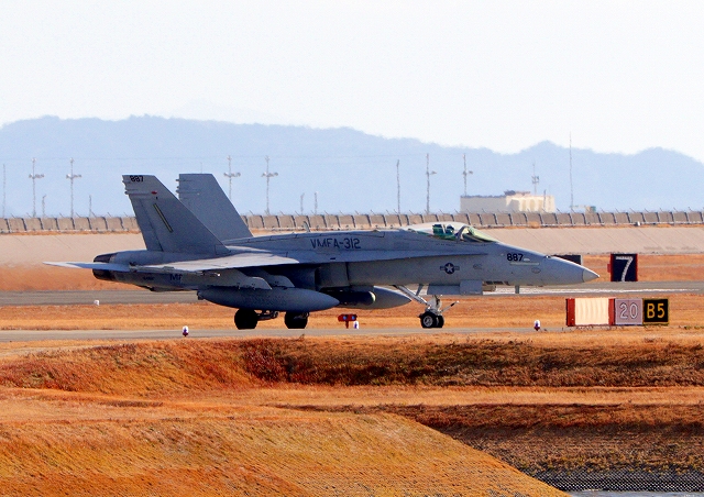 米海兵隊 UC-12W ヒューロン 軽輸送機(岩国基地)、887番機(VMFA-312)が着陸 |
