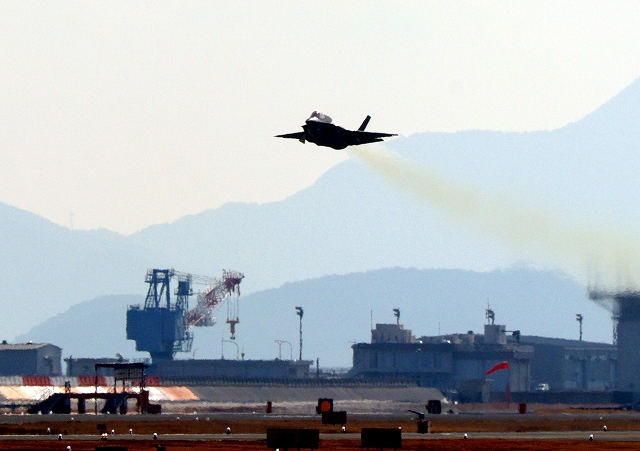 米海兵隊 F-35B ライトニングⅡ 戦闘機(岩国基地)、DT、30番機が離陸 |