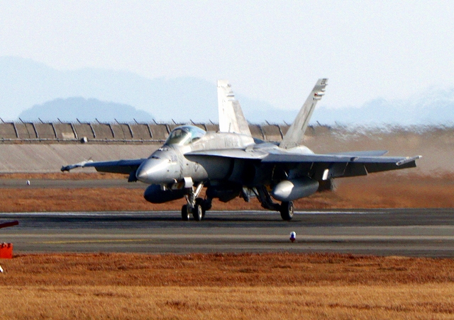 米海兵隊 F/A-18C ホーネット 戦闘攻撃機(岩国基地)、DR、230番機(VMFA312)が着陸 |