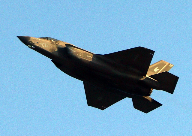 米海兵隊 F-35B ライトニングⅡ 戦闘機(岩国基地)、DT、28番機が離陸 |