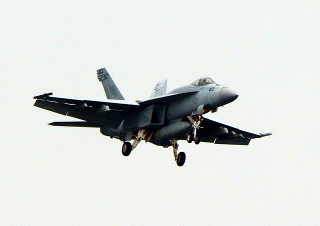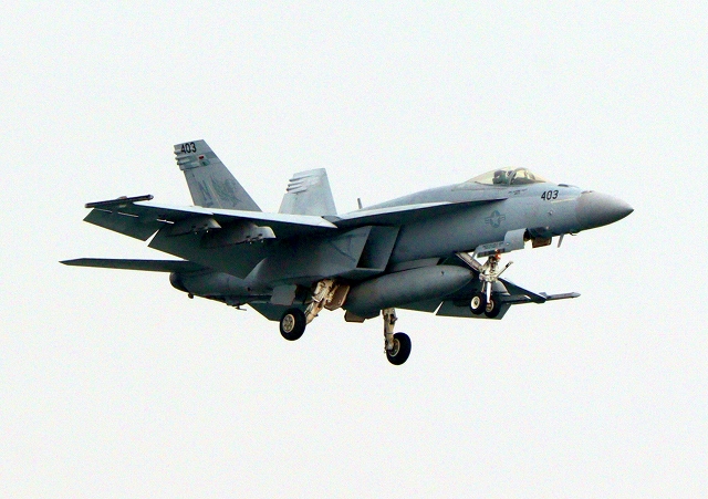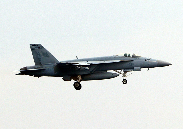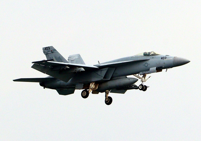 米海軍艦載機 F/A-18E スーパーホーネット 戦闘攻撃機(岩国基地)、NF、403番機が帰還 |