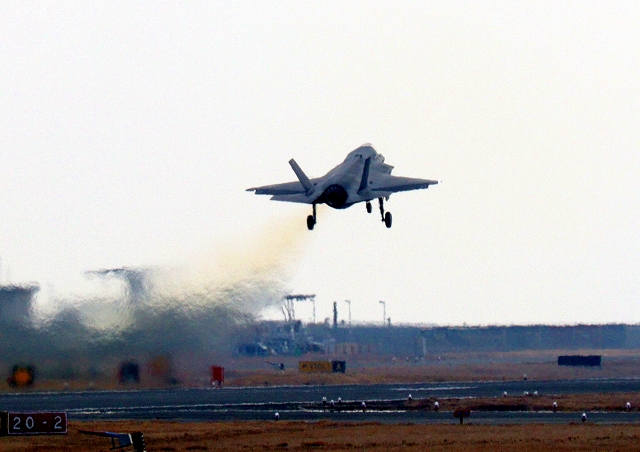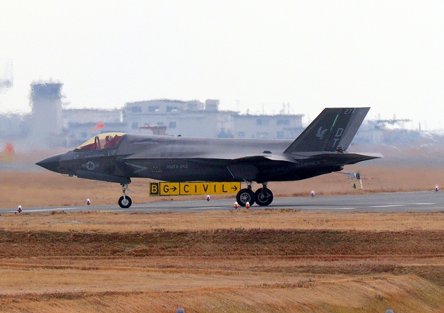 米海兵隊 F-35B ライトニングⅡ 戦闘機(岩国基地)、DT、26番機が離陸 |