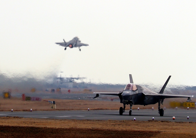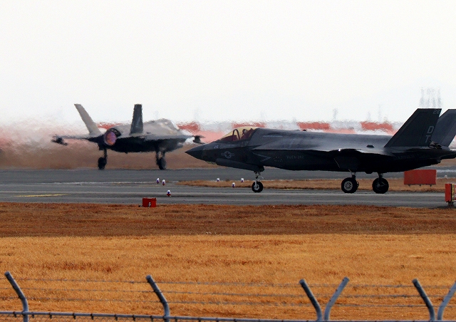 米海兵隊 F-35B ライトニングⅡ 戦闘機(岩国基地)、DT、27番機が離陸 |