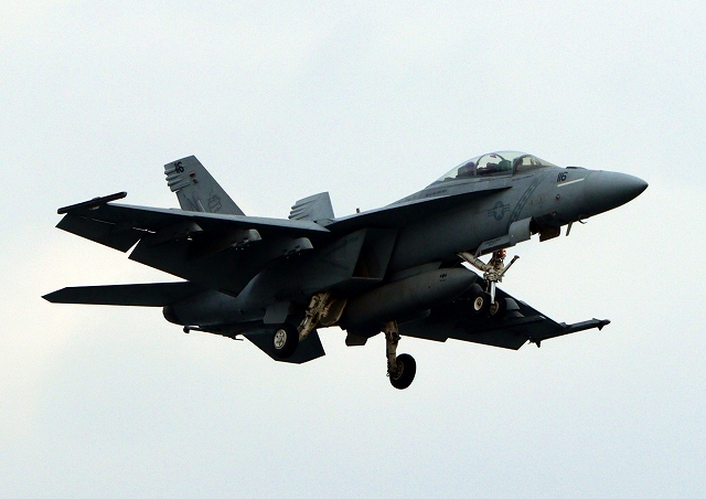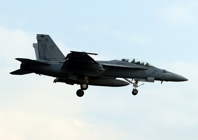 米海軍艦載機 F/A-18F スーパーホーネット 戦闘攻撃機(岩国基地)、NF、116番機が帰還 |