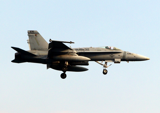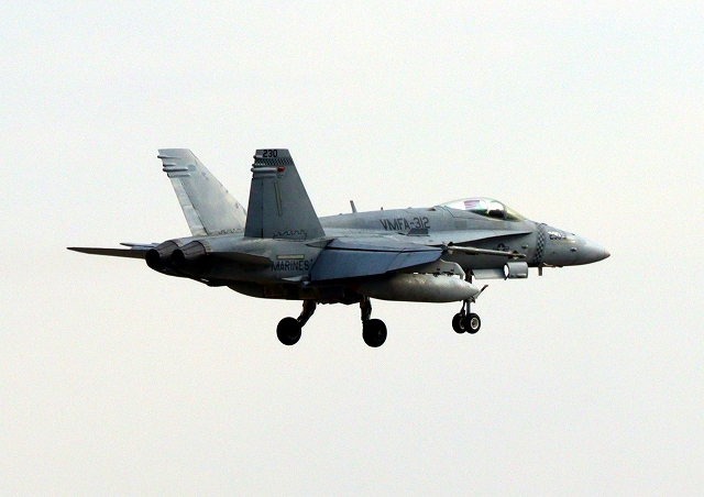 米海兵隊 F/A-18C ホーネット 戦闘攻撃機(岩国基地)、DR、230番機が帰還 |