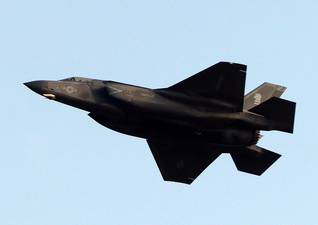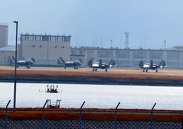 米海兵隊 F-35B ライトニングⅡ 戦闘機(岩国基地)、VK、12.1番機が離陸 |