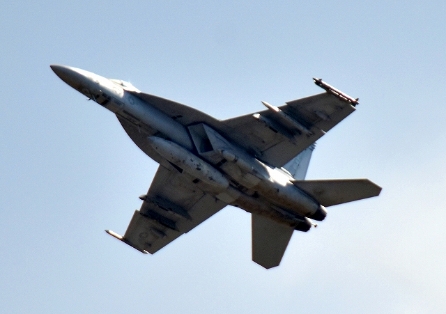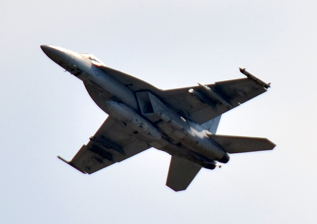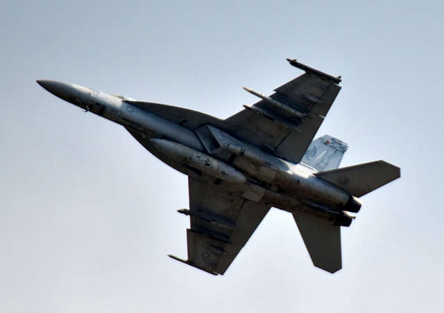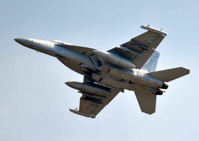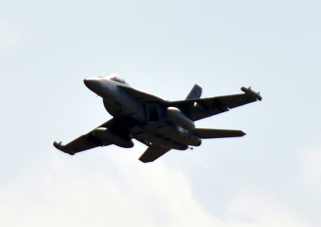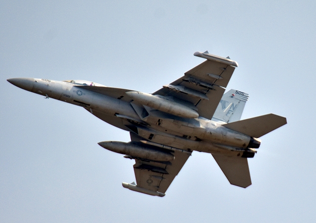 米海軍艦載機 F/A-18E スーパーホーネット 戦闘攻撃機(岩国基地)、NF、405番機が離陸 |