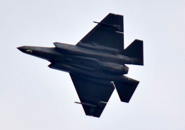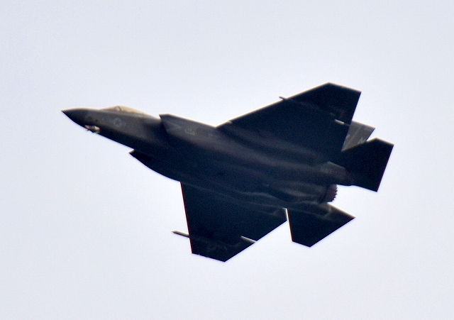 米海軍艦載機 F-35C ライトニングⅡ 戦闘機(岩国基地)、NF、302番機が帰還、旋回 |