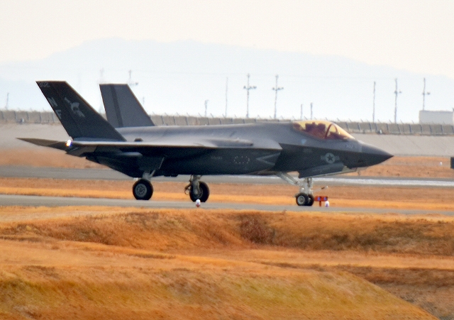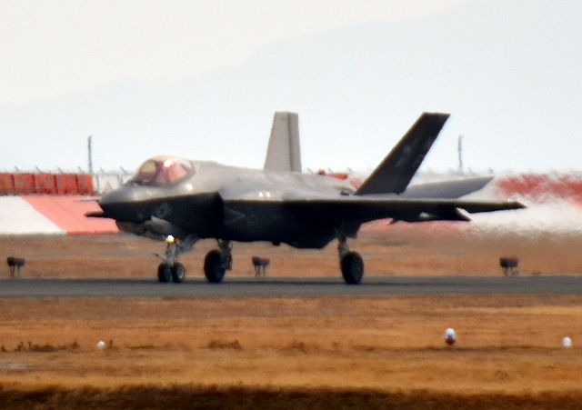 米海軍艦載機 F-35C ライトニングⅡ 戦闘機(岩国基地)、NF、302番機が着陸 12時36分に離陸した機。1時間22分の飛行でした。 |