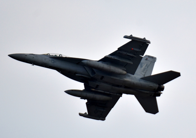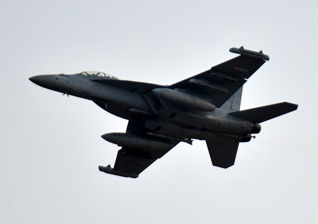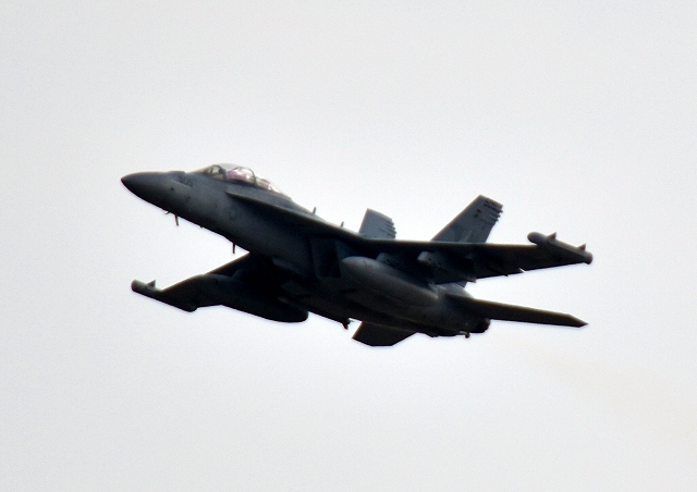 米海軍艦載機 EA-18G グラウラー 電子戦戦闘攻撃機(岩国基地)、NF、505番機が離陸 |