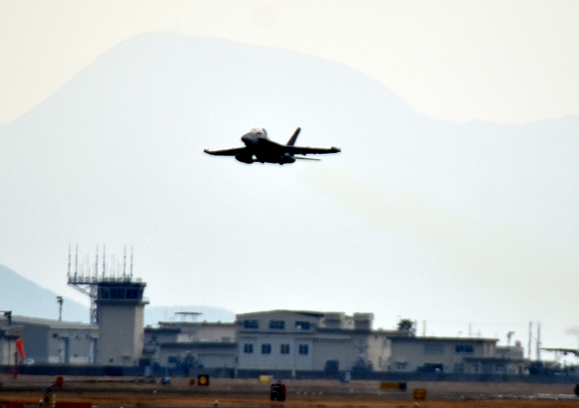 米海軍艦載機 EA-18G グラウラー 電子戦戦闘攻撃機(岩国基地)、NF、502番機が離陸 |