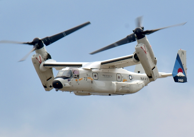 米海軍艦載機 CMV-22B オスプレイ、73-9460番機が旋回