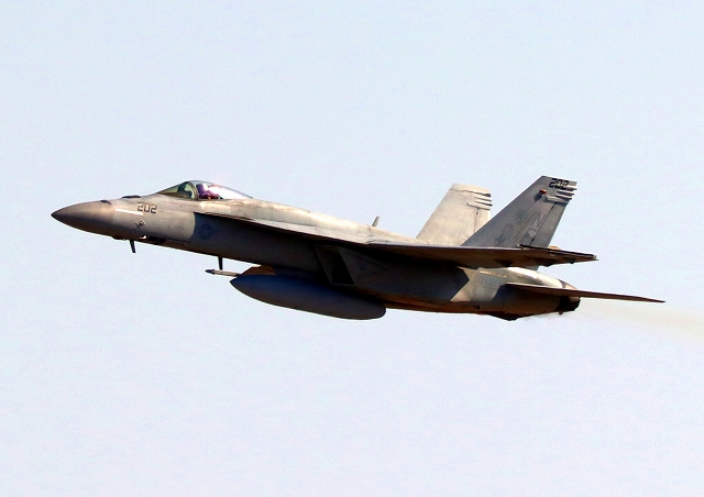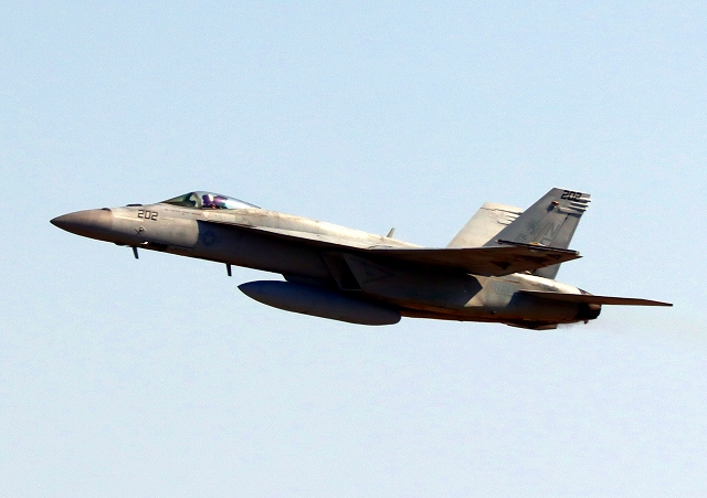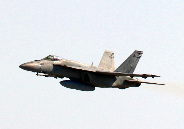 米海軍艦載機 F/A-18E スーパーホーネット 戦闘攻撃機(岩国基地)、NF、202番機が離陸 |