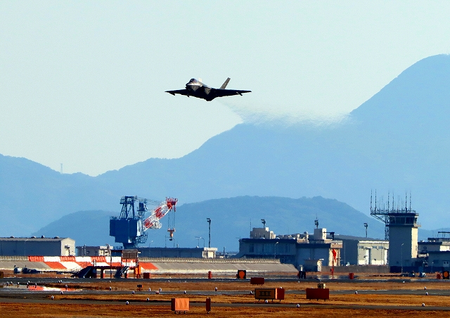 米海軍艦載機 F-35C ライトニングⅡ 戦闘機(岩国基地)、NF、314番機が離陸 |