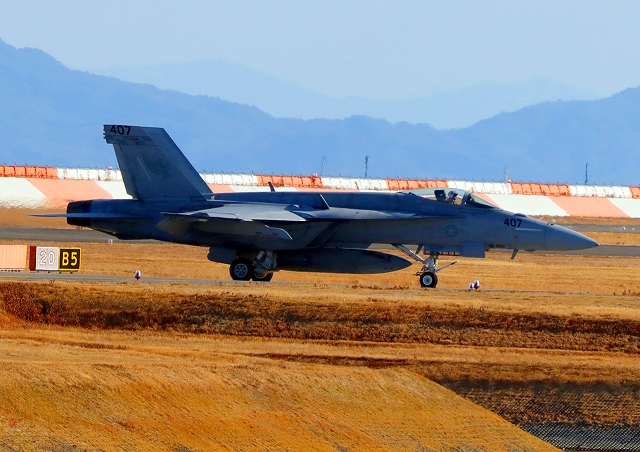 米海軍艦載機 F/A-18E スーパーホーネット 戦闘攻撃機(岩国基地)、NF、407番機 |