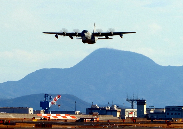 米海兵隊 KC-130J 空中給油機 スーパーハーキュリーズ(米本土海兵隊基地)、BH 0274番機が旋回 |