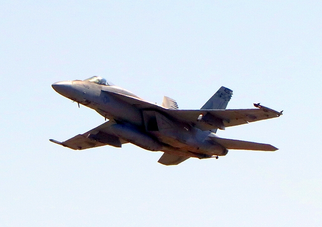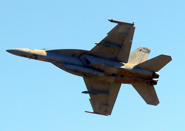 米海軍艦載機 F/A-18E スーパーホーネット 戦闘攻撃機(岩国基地)、NF、406番機が離陸 |
