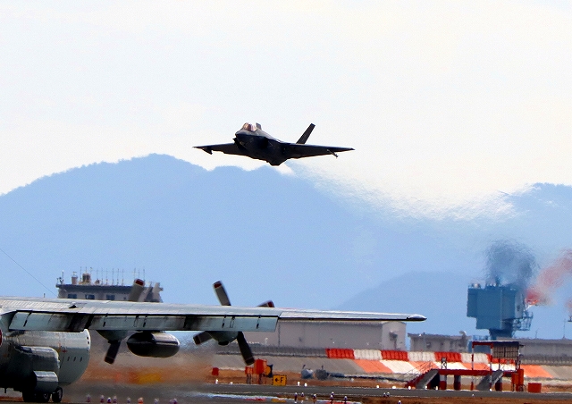 米海軍艦載機 F-35C ライトニングⅡ 戦闘機(岩国基地)、NF、311番機が離陸 |