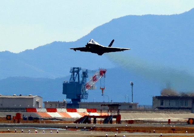 米海軍艦載機 F-35C ライトニングⅡ 戦闘機(岩国基地)、NF、305番機が離陸 |