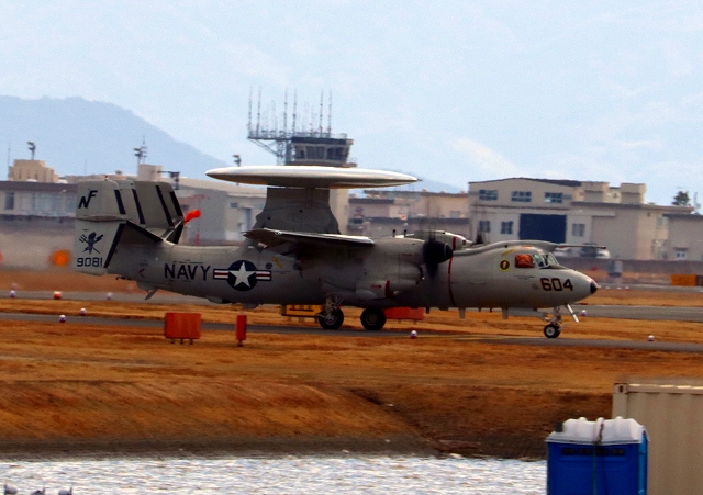 米海軍艦載機 E-2D アドヴァンスド・ホークアイ 早期警戒機(岩国基地)、604番機が帰還 |