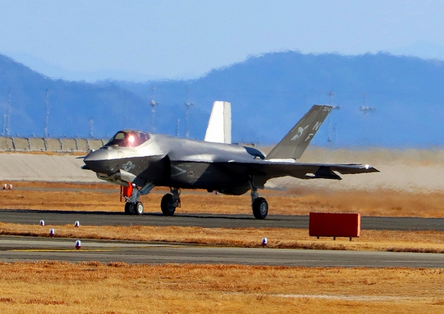 米海軍艦載機 F-35C ライトニングⅡ 戦闘機(岩国基地)、NF、301番機が着陸 |