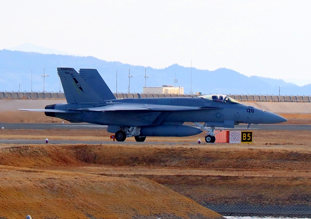 米海軍艦載機 F/A-18E スーパーホーネット 戦闘攻撃機(岩国基地)、120番機? |