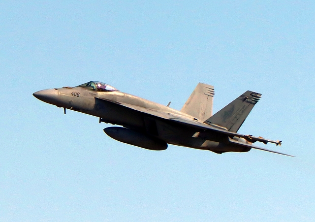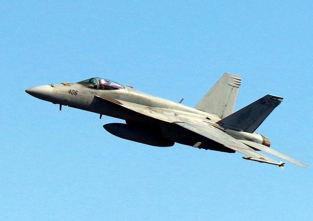 米海軍艦載機 F/A-18E スーパーホーネット 戦闘攻撃機(岩国基地)、NF、406番機が離陸 |