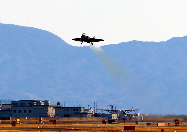 米海軍艦載機 F-35C ライトニングⅡ 戦闘機(岩国基地)、NF、301番機が離陸 |