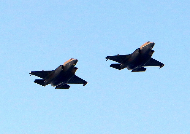 米海兵隊 F-35B ライトニングⅡ 戦闘機(岩国基地)、DT、29番機。31番機が2機編隊で帰還 |