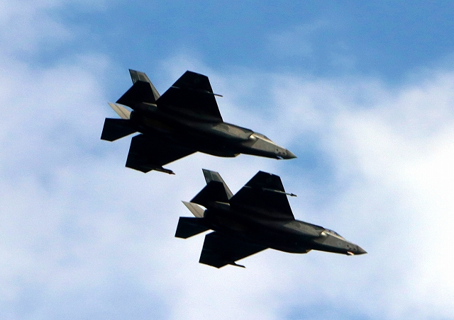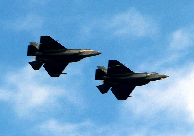 米海軍艦載機 F-35C ライトニングⅡ 戦闘機(岩国基地)、NF、315番機、301番機が2機編隊で帰還 |