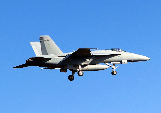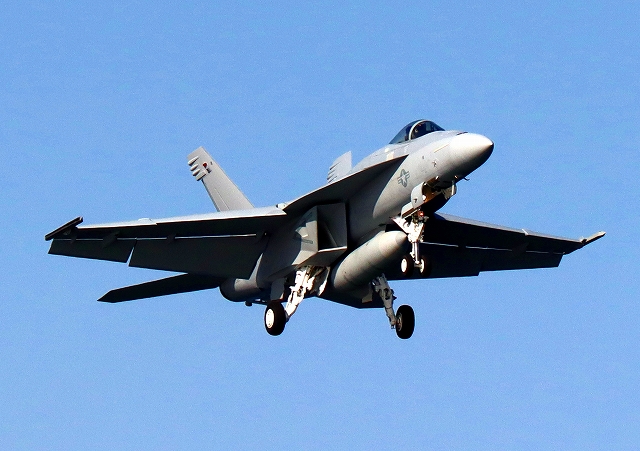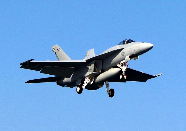 米海軍艦載機 F/A-18E スーパーホーネット 戦闘攻撃機、番号未記入機が帰還 |