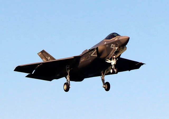 米海軍艦載機 F-35C ライトニングⅡ 戦闘機(岩国基地)、NF、302番機が着陸 13時35分に離陸した機。1時間19分の飛行でした。 |