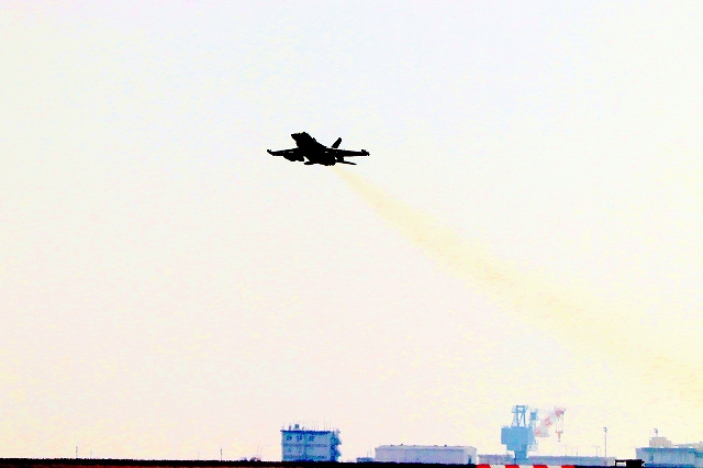 米海軍艦載機 EA-18G グラウラー 電子戦戦闘攻撃機(岩国基地)、NF、502番機が離陸