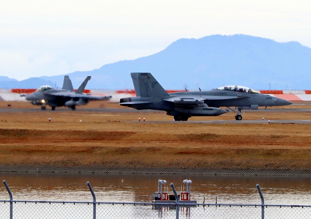 米海軍艦載機 EA-18G グラウラー 電子戦戦闘攻撃機(岩国基地)、NF、500番機、502番機 |