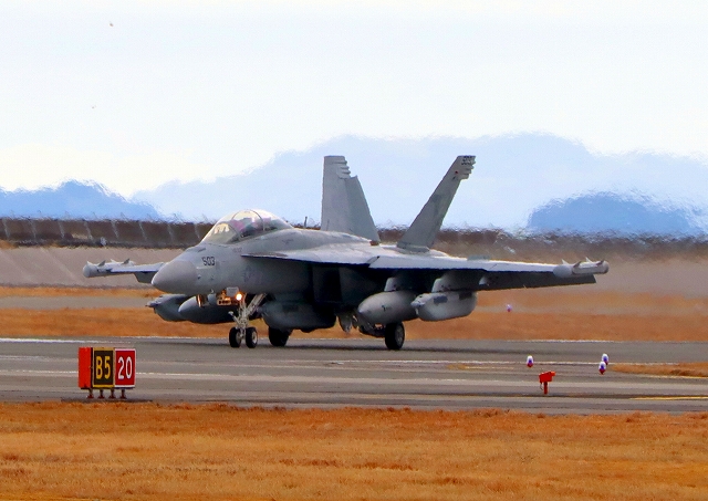 米海軍艦載機 EA-18G グラウラー 電子戦戦闘攻撃機(岩国基地)、NF、503番機が着陸 |
