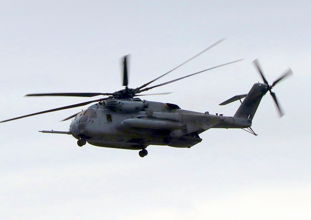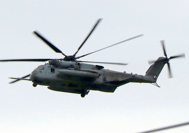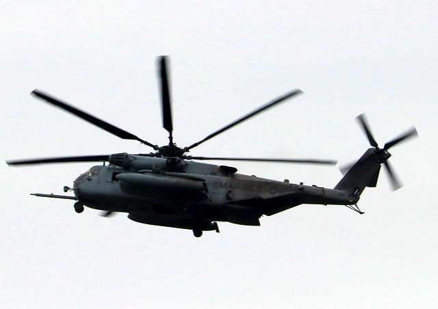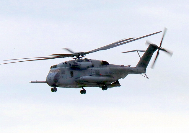 米海兵隊 CH-53E 強襲大型輸送ヘリ スーパースタリオン 14番機が旋回 |
