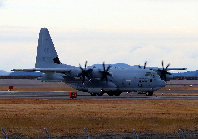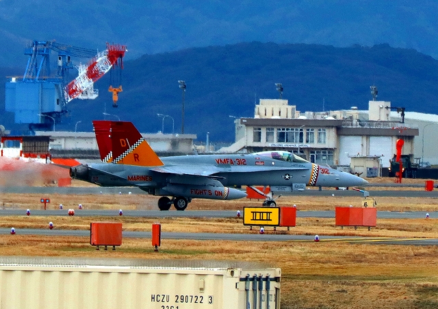 米海兵隊 F/A-18C ホーネット 戦闘攻撃機(岩国基地)、DR、312番機 12時39分に離陸した機。 |